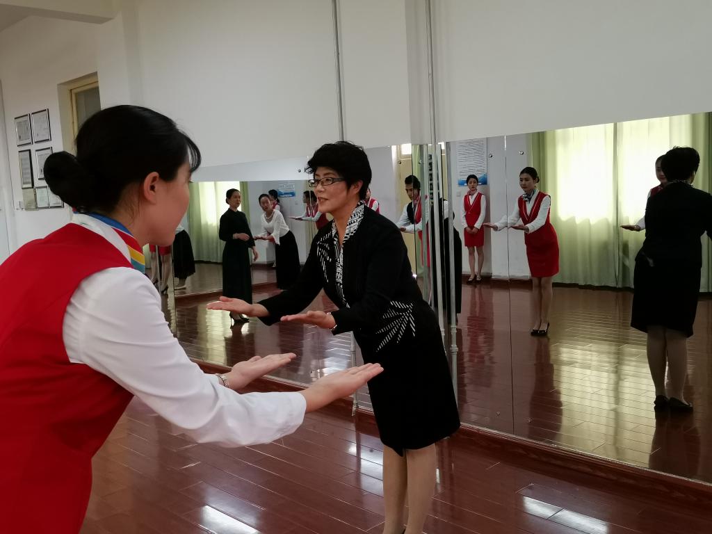 高铁乘务员工代表进行了礼仪操展示,同学们着装规范、姿态优雅,一动一静蕴涵着知性的气质和文明的素养。