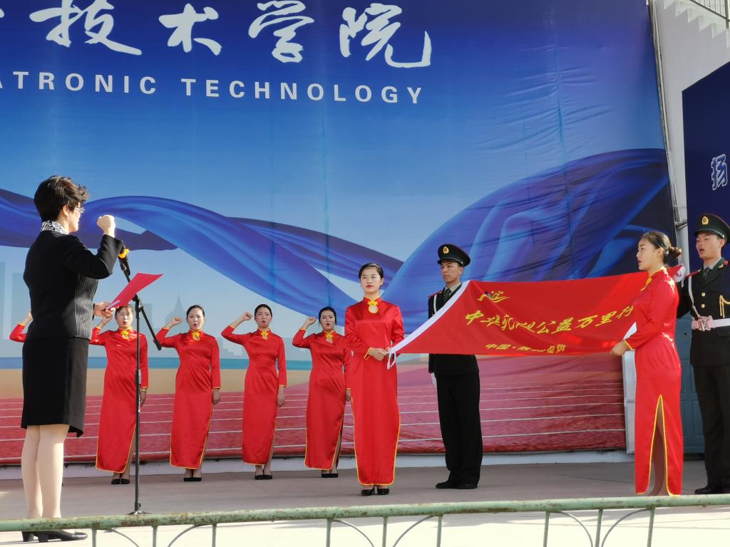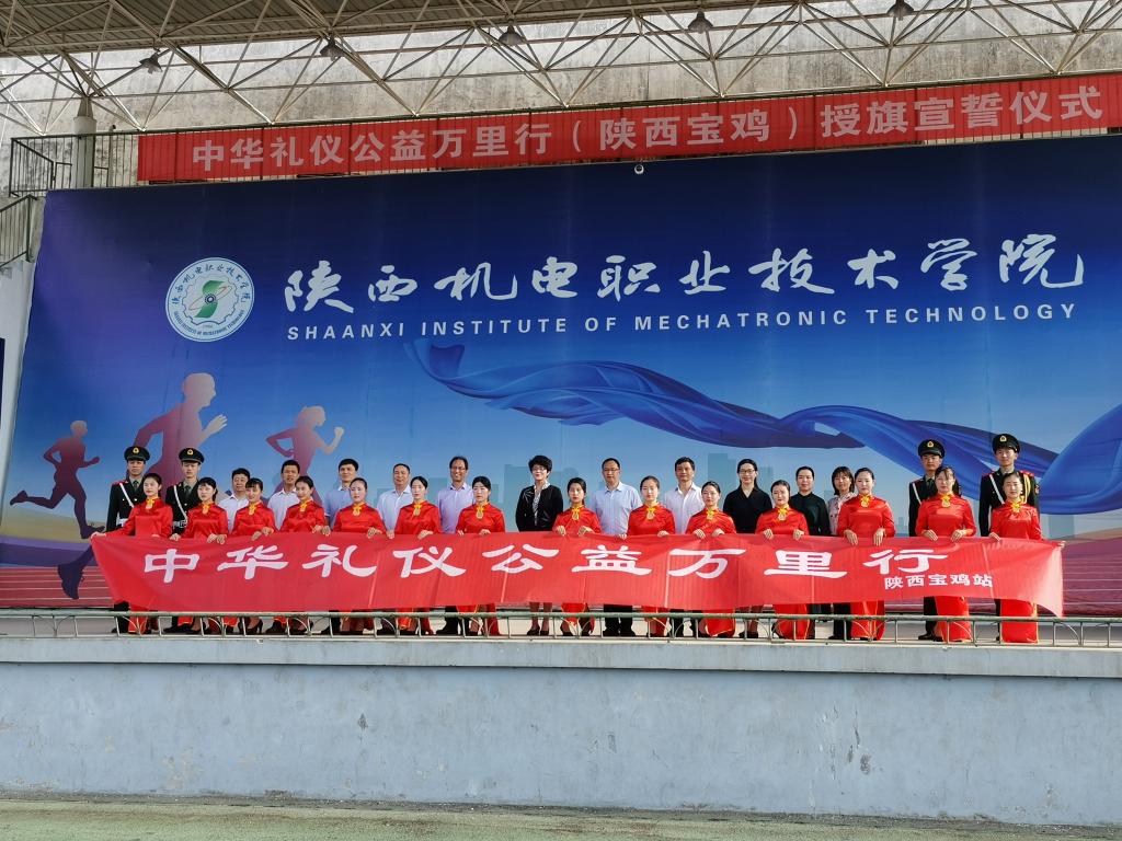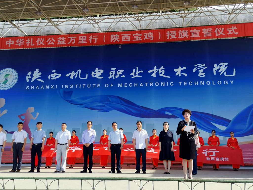 启动仪式会场宏大,气氛热烈。在庄严隆重的仪式上,专业主持显示极高礼仪素质,也精准地阐释了中华礼仪万里行教育的重大意义。蔡少惠副会长宣读了《中华礼仪公益万里行倡议书》并为“弘扬中华礼仪公益万里行活动”陕西宝鸡站授旗,邢平礼仪工作室负责人、经济管理与艺术系党支部书记、系主任邢平代表宝鸡站接旗。