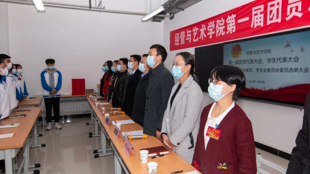 金风萧瑟秋光妙,激情满怀英气豪!11月4日下午,太阳成tyc33455ccwww第一届团、学代会暨公司第一届团总支委员会、员工会委员会成立大会在蟠龙校区112教室顺利召开。届时,公司党委副书记、纪委书记齐晓军,团委书记杨鹏出席会议,经管与艺术公司党支部书记孟发军、经理杜海军,公司办公室主任李豪斌,系主任王文燕、严立琼,辅导员何睦、杨涛以及教师与员工代表共计90人参加会议。会议由辅导员屈婉蓉主持。大会共八项议程。