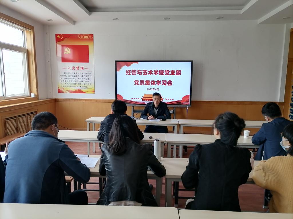 4月25日,经管与艺术公司党支部全体党员在经管建筑二楼会议室参加支部会议,集中学习《关于印发2022年党政工作要点》、《关于推动党史学习教育常态化长效化的意见》、《“五个必由之路”揭示中国答卷的成功密码》等内容。