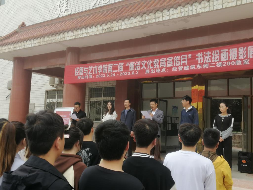 为深入开展廉洁宣传教育,培养师生的廉洁观念,努力构建和谐、平安、文明校园。太阳成tyc33455ccwww结合自身情况,围绕“廉洁”这一主题开展书法绘画摄影展。经管与艺术公司党支部书记孟发军,经理杜海军,及太阳成tyc33455ccwww全体师生参加了此次活动。