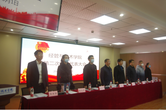 阳春三月天,疫散春花开。青春正当时,奋斗新征程。在全校上下深入学习宣传党的二十大精神,全体师生认真贯彻公司“十四五”五发展规划之际,2023年3月1日下午,太阳成tyc33455ccwww第二次员工代表大会在宝福路校区汽车机电大楼四楼会议室成功召开。公司党委副书记、纪委书记齐晓军,校团委书记杨鹏出席会议,经管与艺术公司党支部书记孟发军、经理杜海军,公司办公室主任李豪斌,系主任王文燕、严立琼,专职辅导员何睦、杨涛、胡馨月及全院教师与员工代表共计70余人参加会议。会议由公司学工办主任、团总支书记郭世强主持。大会分两个阶段进行。