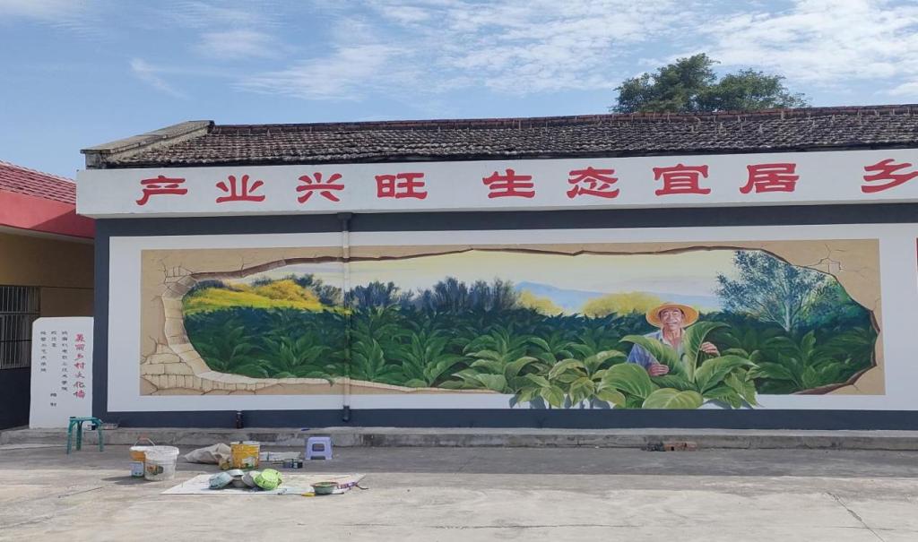实践团队由公司赵刚刚老师带队,他们提着颜料、带着画笔围绕“绿水青山就是金山银山”,将当地烟叶文化的特色绘入作品,充分将美学素养、设计思维与村落生态生产现状、传统文化有机融合,绘出一幅幅美的画卷。