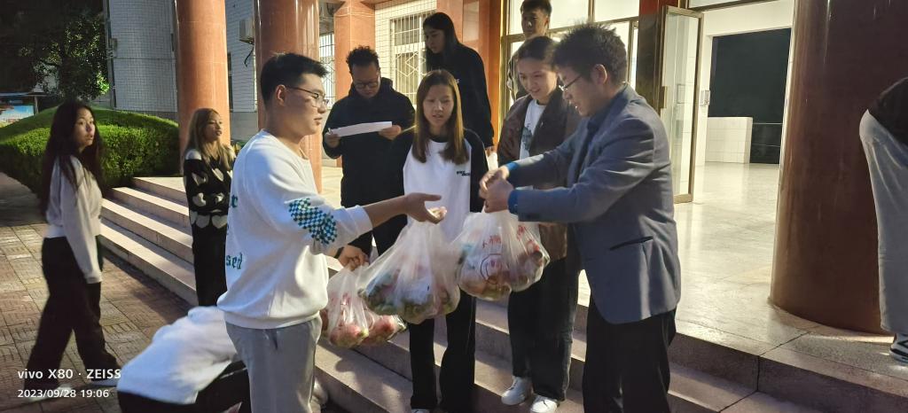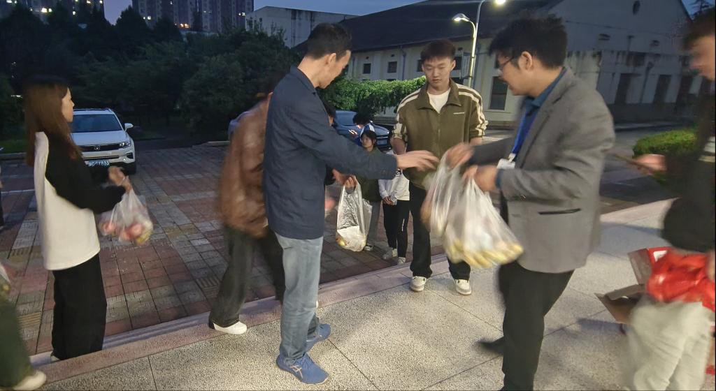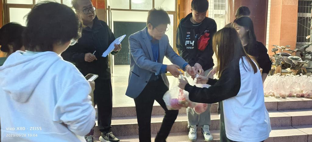 月饼分发现场,氛围活跃秩序井然。各位老师将满载美好祝福的月饼及象征平安的苹果和冬枣等送到同学们手中,预祝同学们中秋、国庆双节快乐,希望每位同学都能感受到这份来自公司的温暖与关怀。