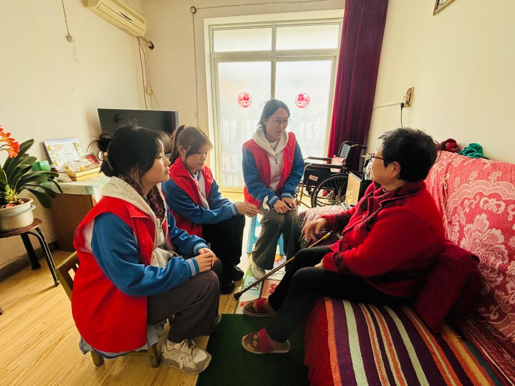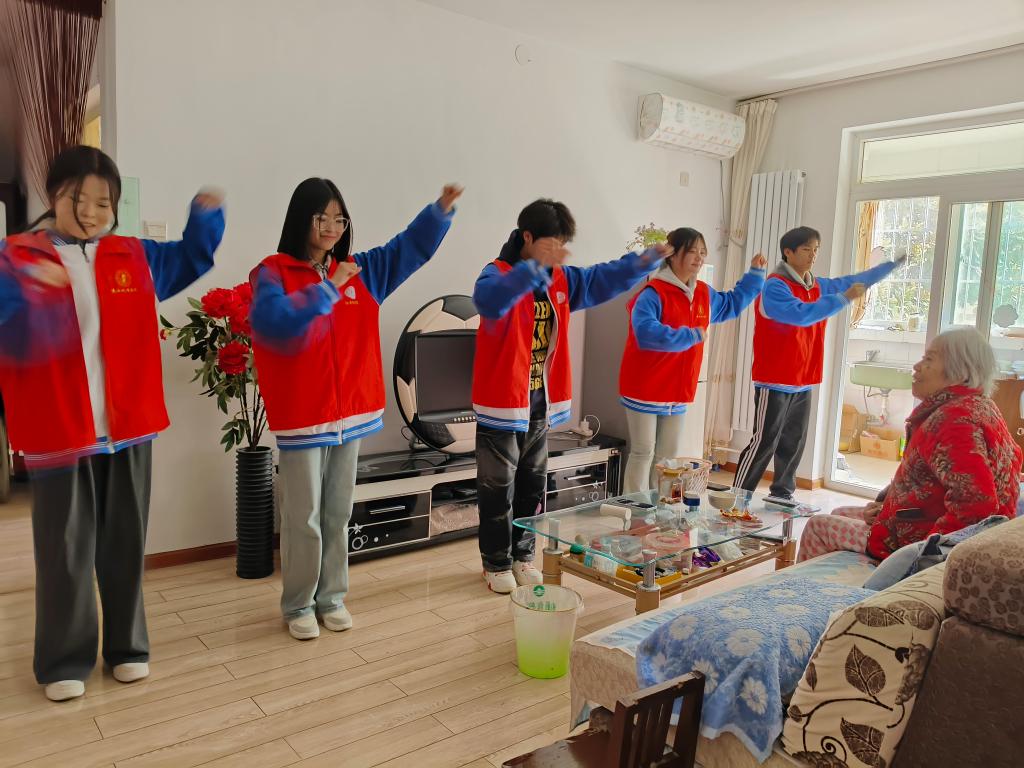 清扫社区环境结束后,志愿者们分组前往社区老人家中,陪老人唠家常、打扫老人家居卫生、给老人表演节目等。志愿者们坐在爷爷奶奶身边,听老人回忆年轻时的奋斗岁月、听着老人们分享生活乐趣与人生智慧。大家时而欢笑,时而感慨,温馨的氛围弥漫在房间里。
