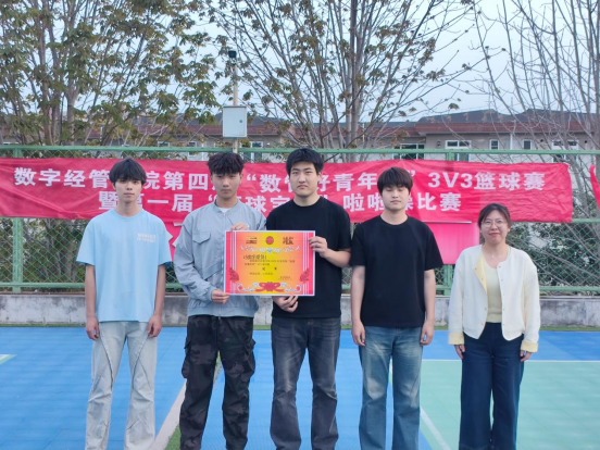 篮球赛场上的健儿们则凭借默契配合与精湛球技,在前期比赛中角逐出冠、亚、季军及道德风尚奖队伍。在闭幕式颁奖环节中,篮球赛道德风尚奖由24数字媒体1班、24动漫制作、24会计3、24数字媒体2班等四支队伍摘得;季军、亚军、冠军分别由23高铁服务1班、23高铁服务2班及23数字媒体1班斩获。