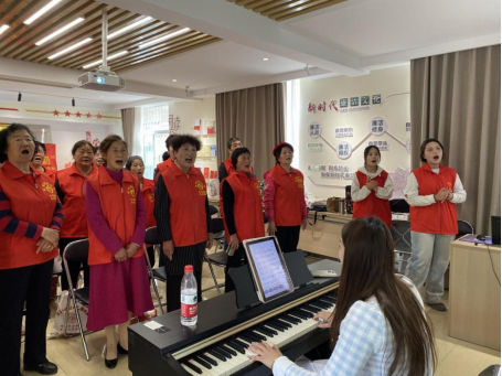 活动当天,在高铁乘务系主任严立琼、专任教师徐润、文婉婷的带领下,志愿者们深入社区,与社区工作者及老年居民展开交流。通过社区负责人的讲解,师生们详细了解了“共享奶奶 共享妈妈”项目的运行机制与成果,该项目通过整合社区资源,鼓励低龄老人服务高龄老人,形成互助养老的良性循环。为丰富项目内涵,志愿者们发挥专业特长,开设趣味艺术课堂:严立琼老师带领老人们学习轻松活泼的“手指舞”,通过节奏训练与肢体协调练习,帮助老年人放松身心;文婉婷老师则通过经典红歌教唱、音乐互动游戏,唤起了老人们的青春记忆。活现场欢声笑语不断,老年朋友们积极参与,展现出对文化生活的热切期盼。
