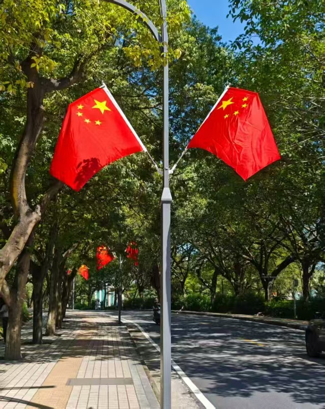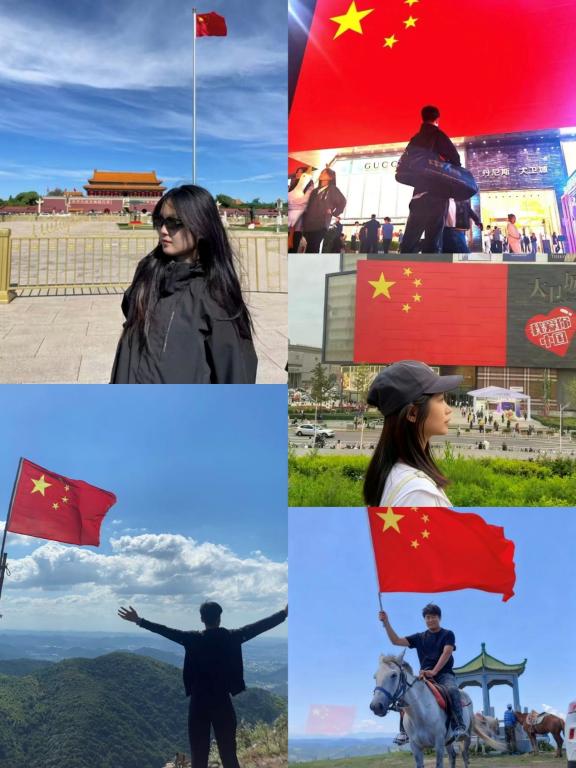 同学们充分发挥创造力,让每一张合影都充满了真挚的情感与独特的构思:有的学子专程前往红色地标,在革命圣地与国旗合影,感受历史的厚重与时代的变迁,上了一堂沉浸式的历史课。旅途中的学子在风景名胜前,自豪地展示手中的国旗,让祖国的壮美河山与鲜艳的旗帜交相辉映。返乡的学子与家人、老友在熟悉的街角或丰收的田野上与国旗合影,展现了个人幸福、家乡发展与国家命运的血脉相连。