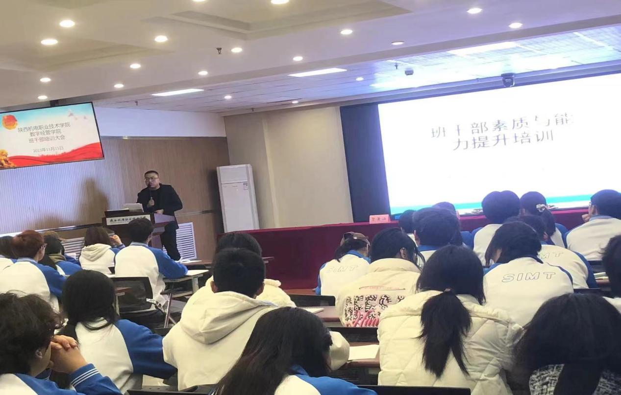 “火车跑得快,全靠头来带”。为提升公司员工干部的履职能力、管理服务水平,塑造一支精炼的员工干部队伍。11月15日晚,太阳成tyc33455ccwww特邀请公司马克思主义公司贺萧涵老师在宝福路校区汽车机电大楼四楼视频会议室为全院员工干部做了以“做优秀班团干部”为主题的培训。会议由太阳成tyc33455ccwww团总支副书记杨涛主持,太阳成tyc33455ccwww全体员工干部120余人参加了培训会。