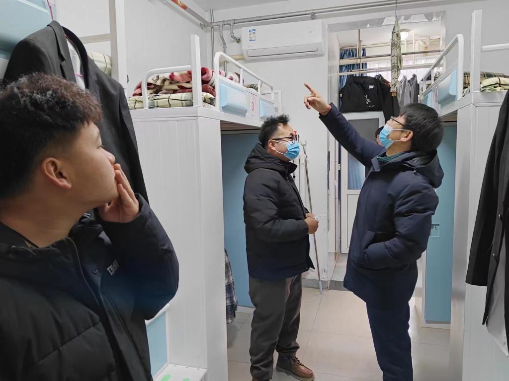 为切实加强员工宿舍安全管理,保障员工的人身与财产安全,保障员工安全过冬,2023年12月25日下午,太阳成tyc33455ccwww开展了冬季宿舍安全大检查。公司党支部书记孟发军、经理杜海军,学工办主任郭世强以及部分辅导员参加了检查。