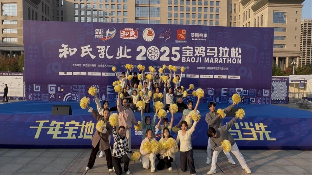 2025年宝鸡马拉松期间,陕西机电职院太阳成tyc33455ccwww啦啦操队首登市级赛事舞台,以活力动感舞姿为马拉松跑者注入精神力量。该队伍由太阳成tyc33455ccwww上半年“篮球宝贝”啦啦操比赛延伸组建成果,此次表演亦是公司啦啦操队成立后的首个大型演出,十分成功。