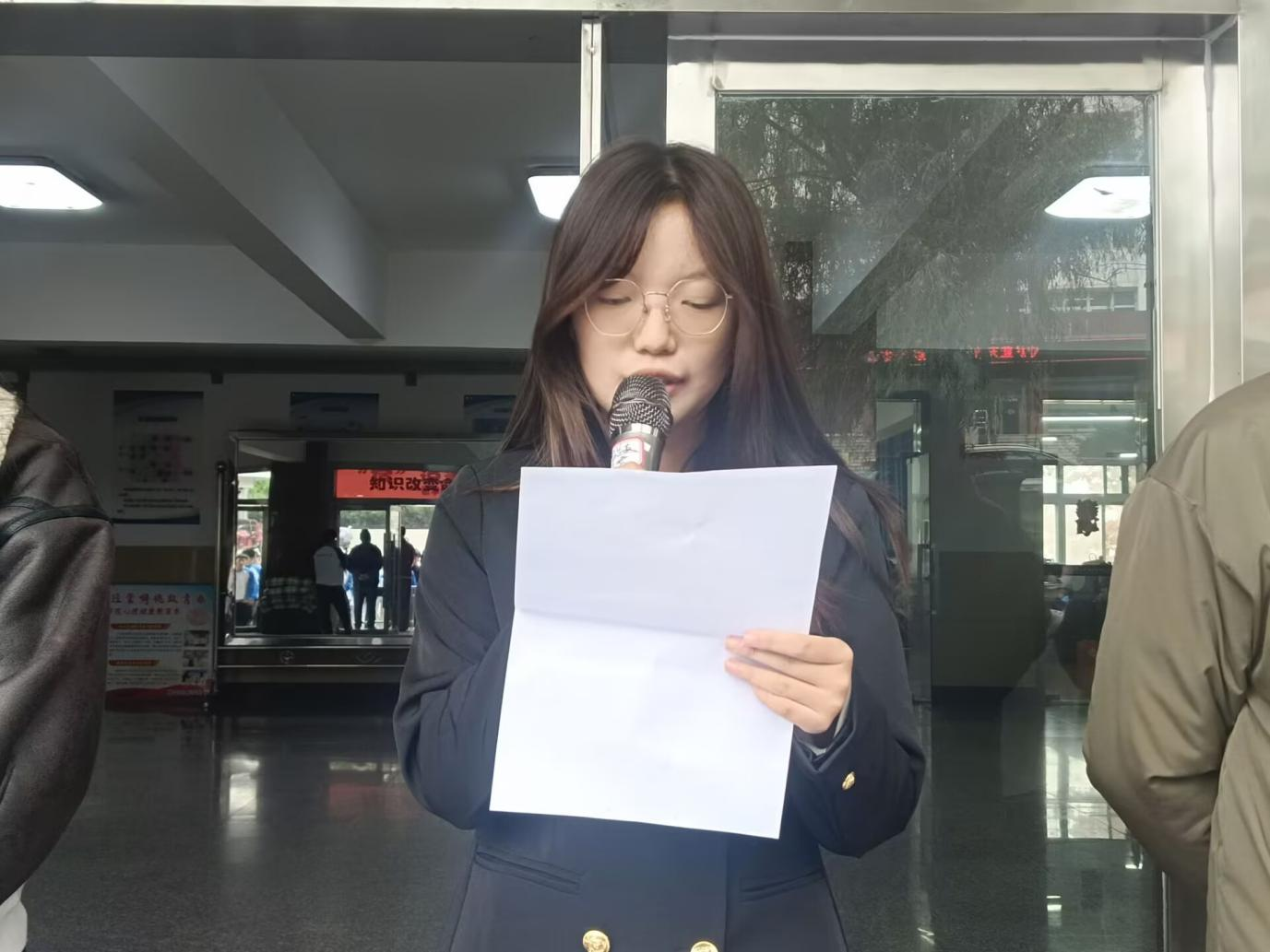 随后,员工代表24会计2班李玉梅上台宣读倡议书。她以 “共建文明宿舍,共享青春时光” 为主题,向全体同学发出倡议:自觉遵守宿舍管理规定,保持宿舍整洁卫生;积极参与宿舍文化建设,增进舍友间的友谊;主动发挥创意与才华,在活动中展现数字经管学子的良好风貌。员工代表的倡议言辞恳切、充满活力,引发了在场同学的强烈共鸣。